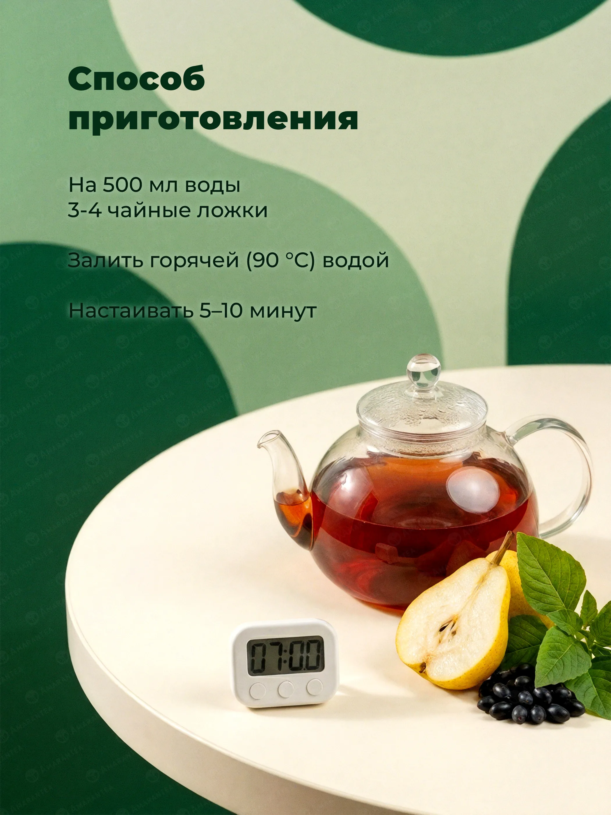 - Состав: Листовой зеленый амарант, груша, барбарис.
