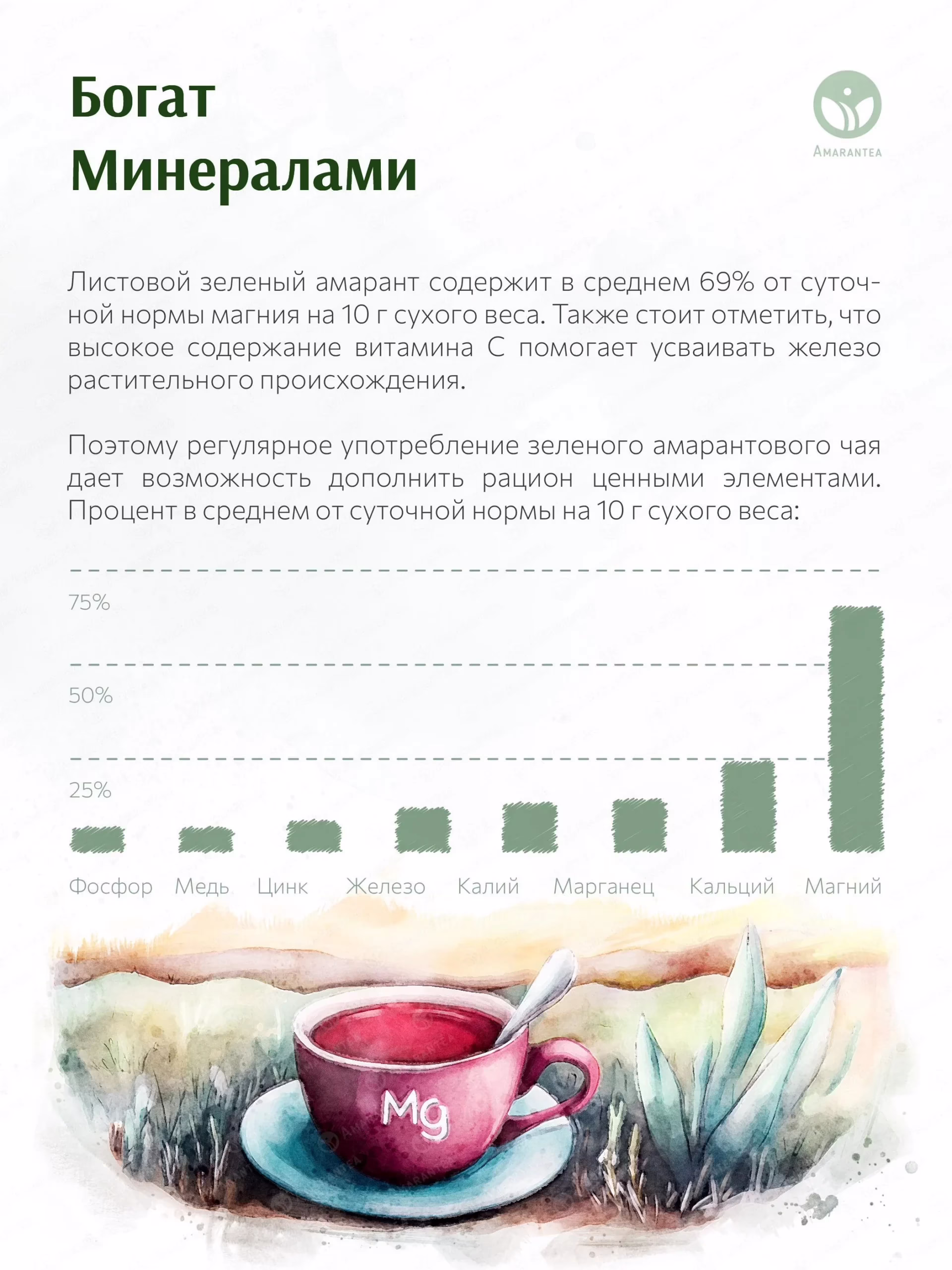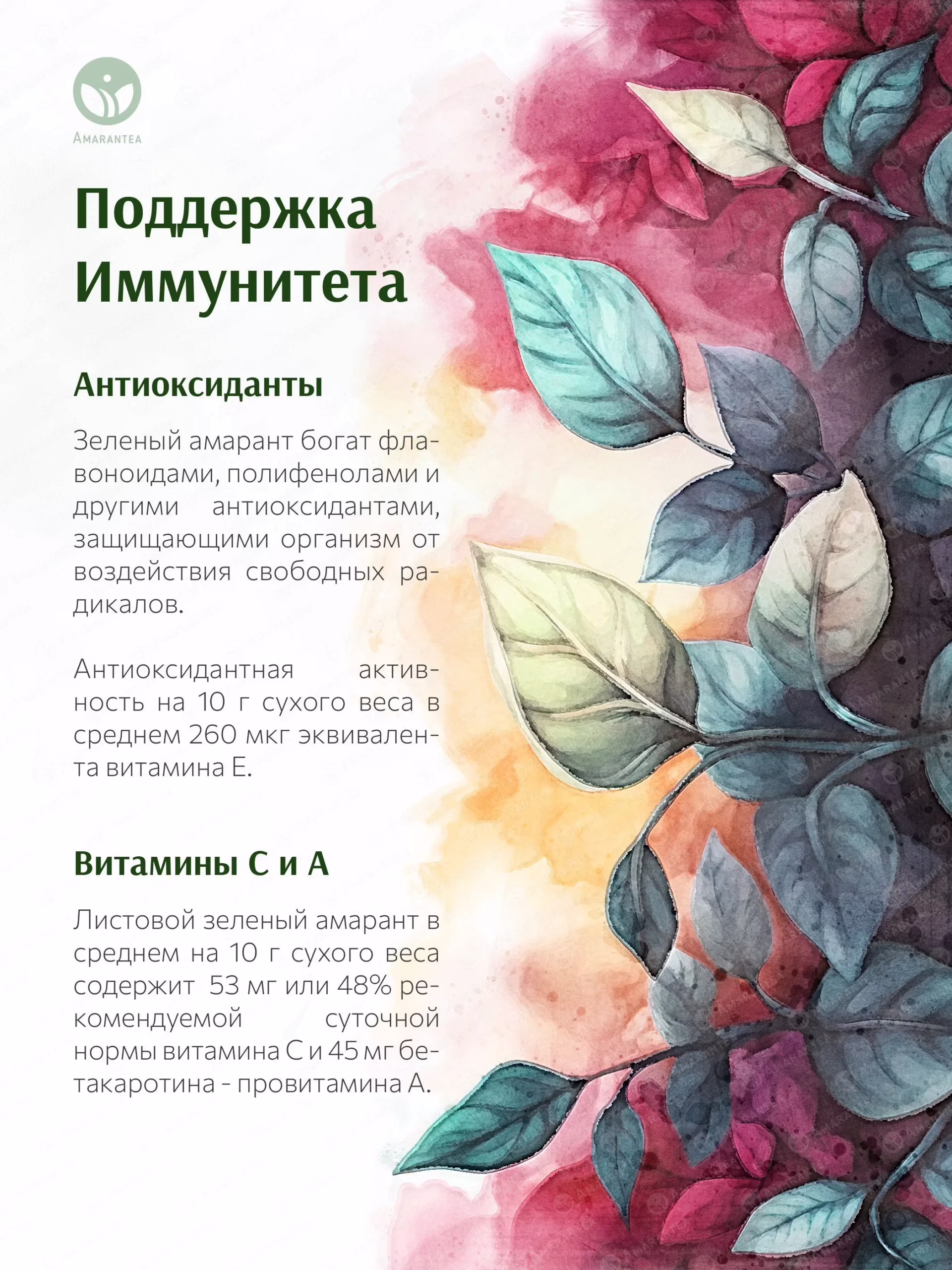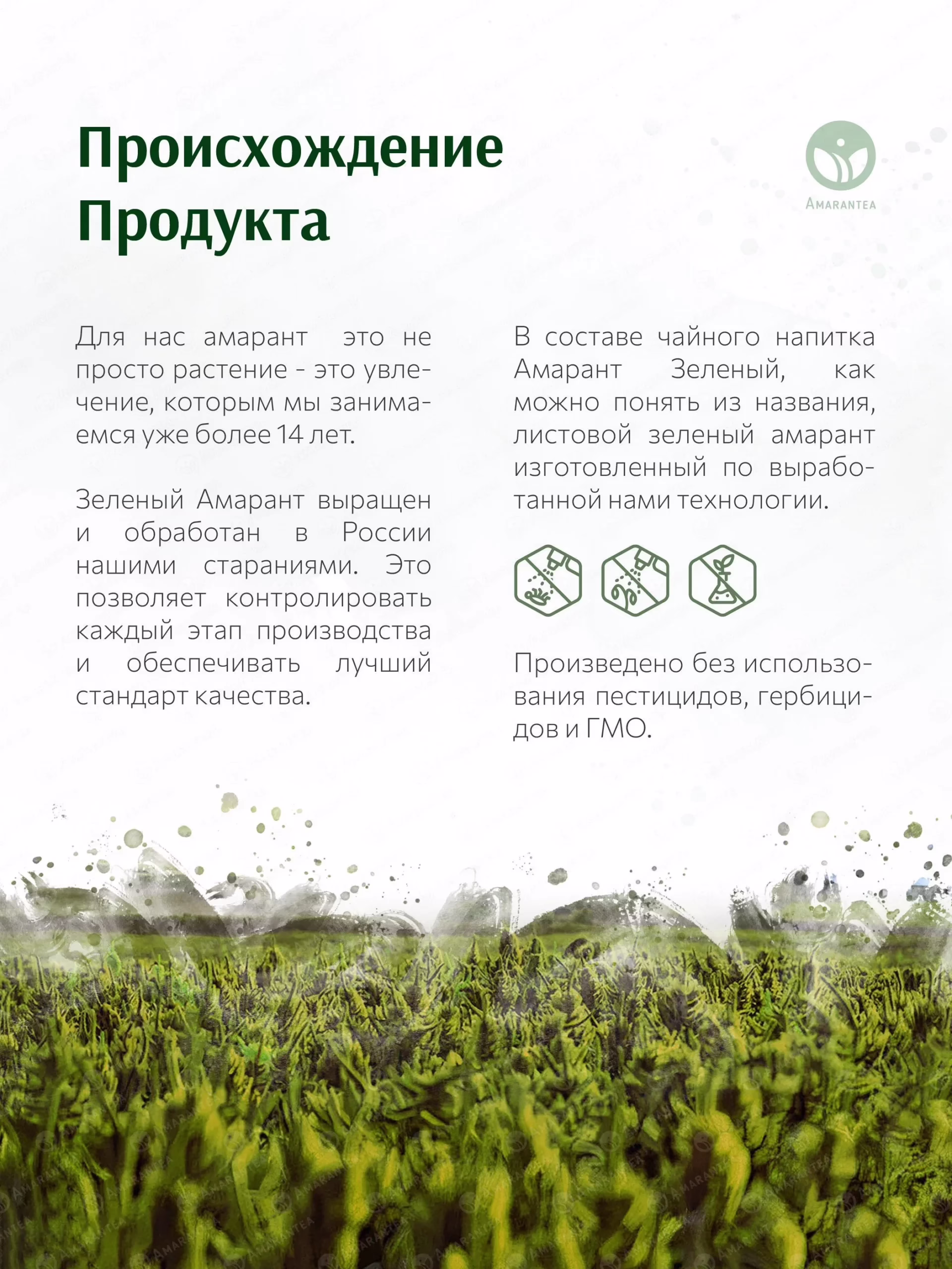 Натуральный чайный напиток из отборного листа зеленого амаранта. Содержит больше идеального белка, чем другие варианты.