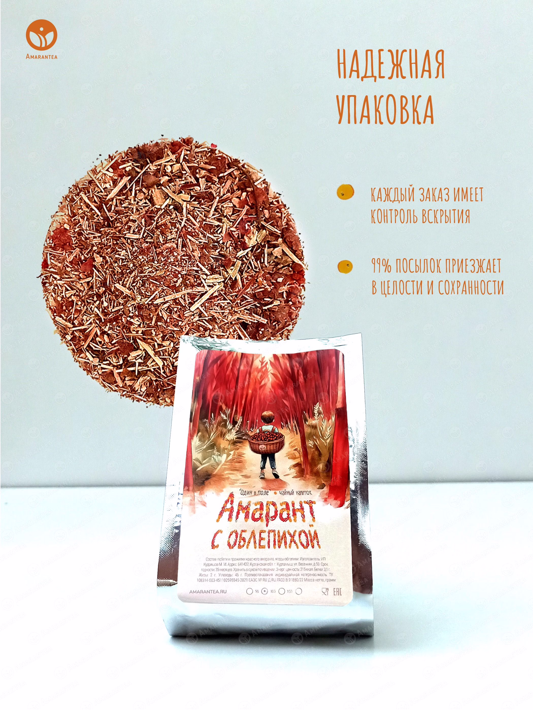 В этой пачке 100 грамм смеси, в основе которой — прожилки листа и масса красного амаранта нашего собственного выращивания, соединенные с яркими ягодами облепихи. Здесь нет маркетинговых уловок и лишних добавок — только два сильных растения в одной чашке.
