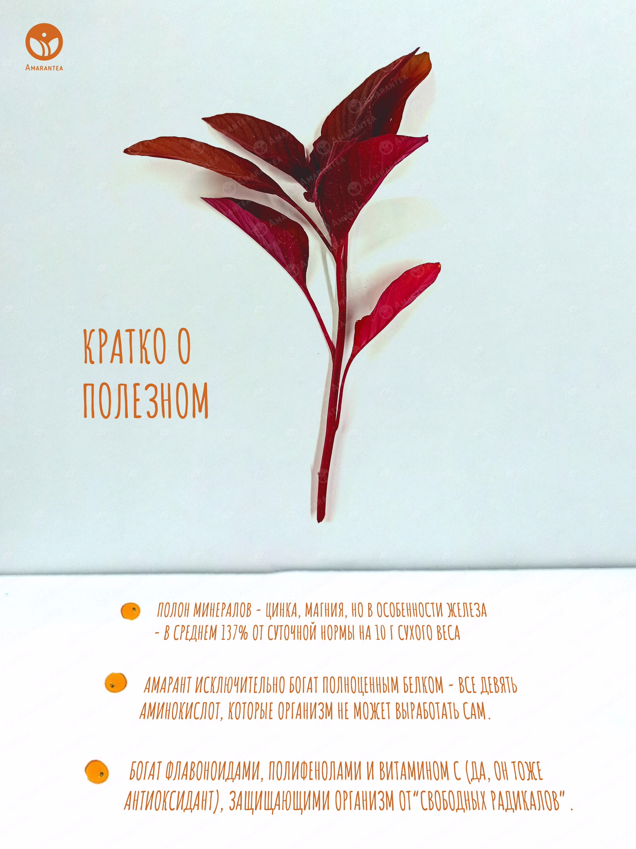 Чайный напиток «Один в поле» Амарант с облепихой — это возможность разнообразить рацион продуктом с понятным происхождением. Amarantea предлагает густой, натуральный вкус и конкретную пользу ингредиентов, которые мы вырастили и сохранили для вас.