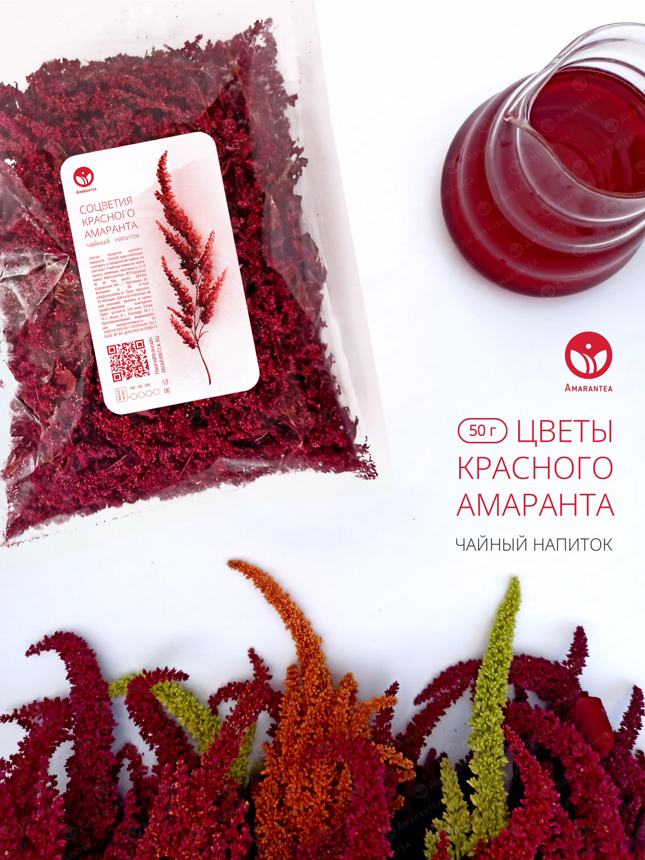 Натуральный чай из соцветий красного амаранта, выращенных и обработанных в России без пестицидов, гербицидов и ГМО.
