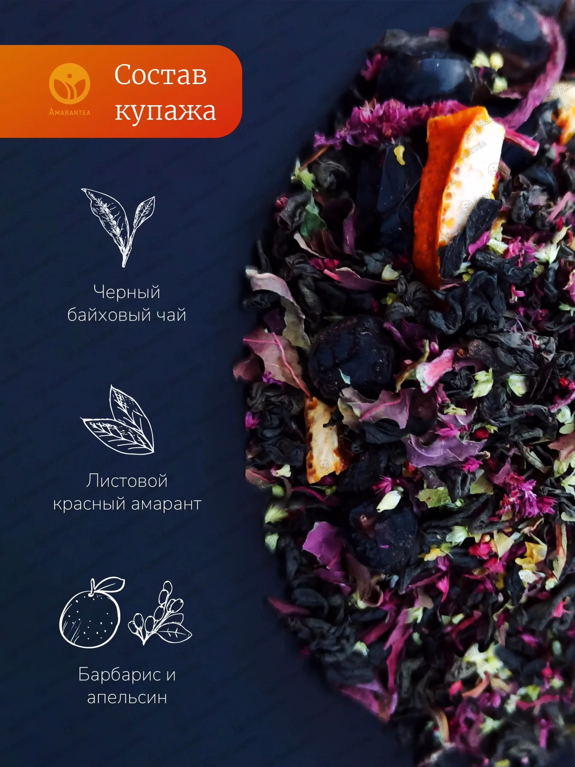 - Чай черный листовой, амарант красный листовой, барбарис, апельсин