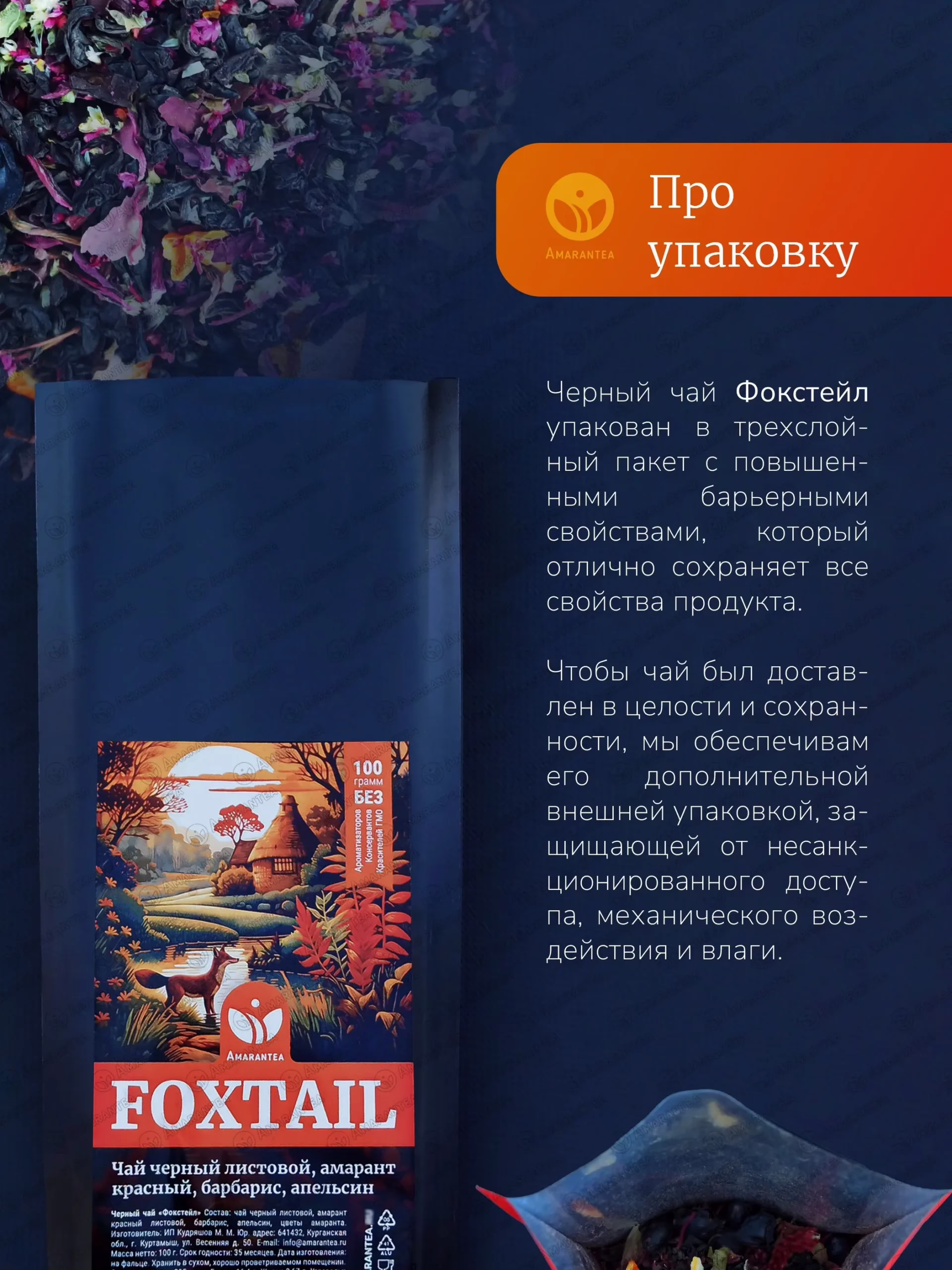 Черный чай FOXTAIL с красным амарантом, барбарисом и апельсином, 100 г