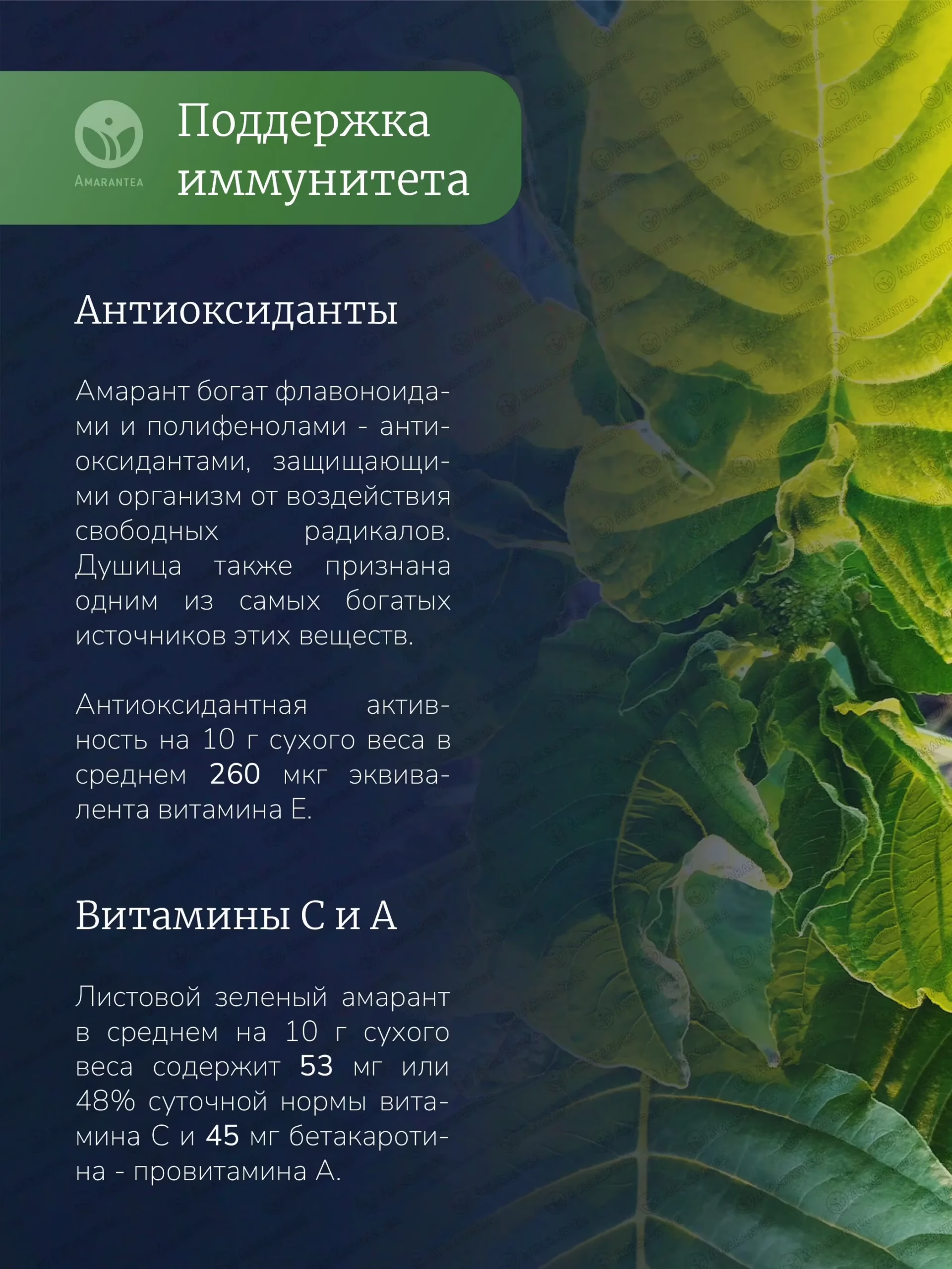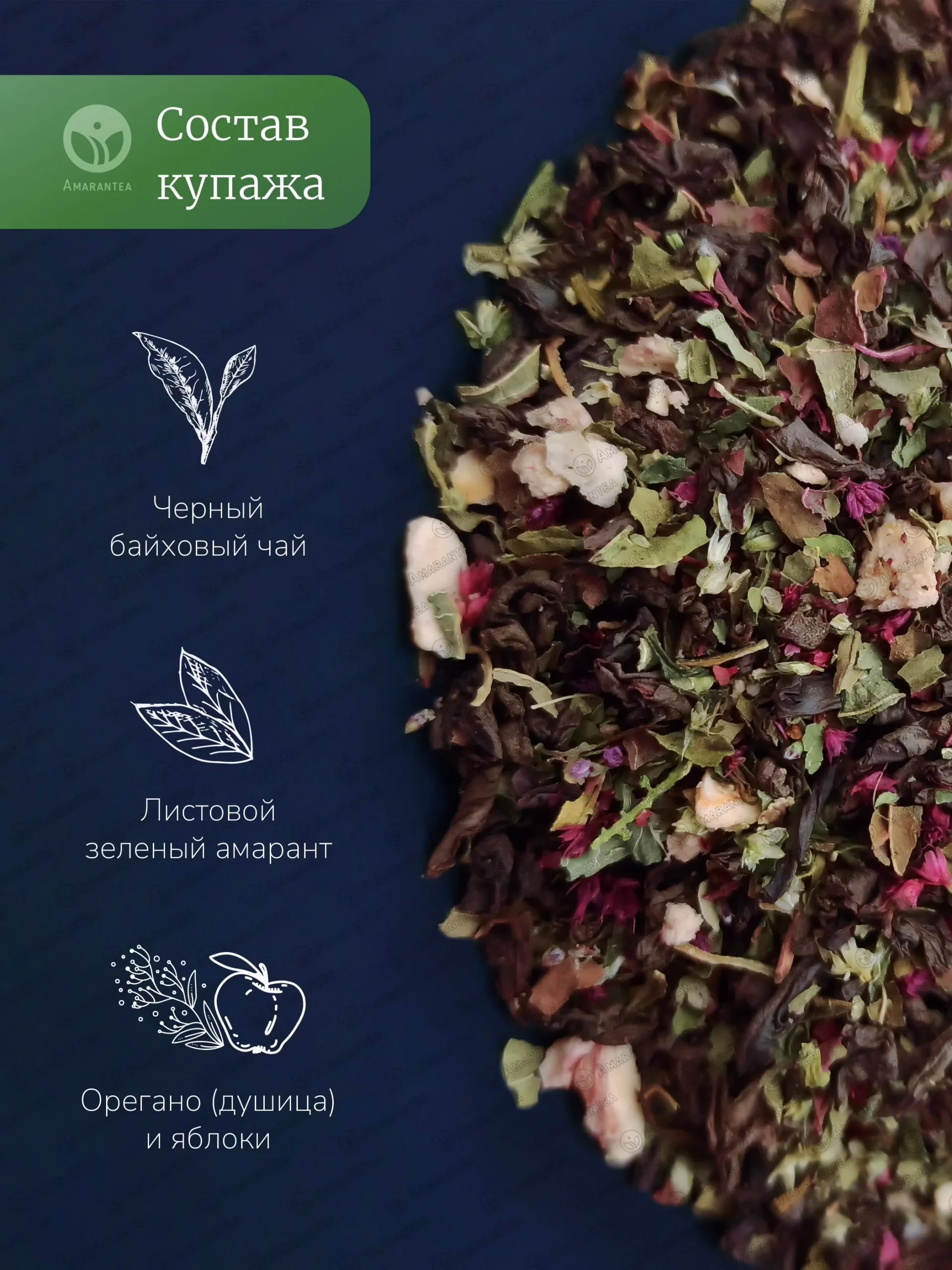- Чай черный листовой, амарант зеленый листовой, орегано, яблоки