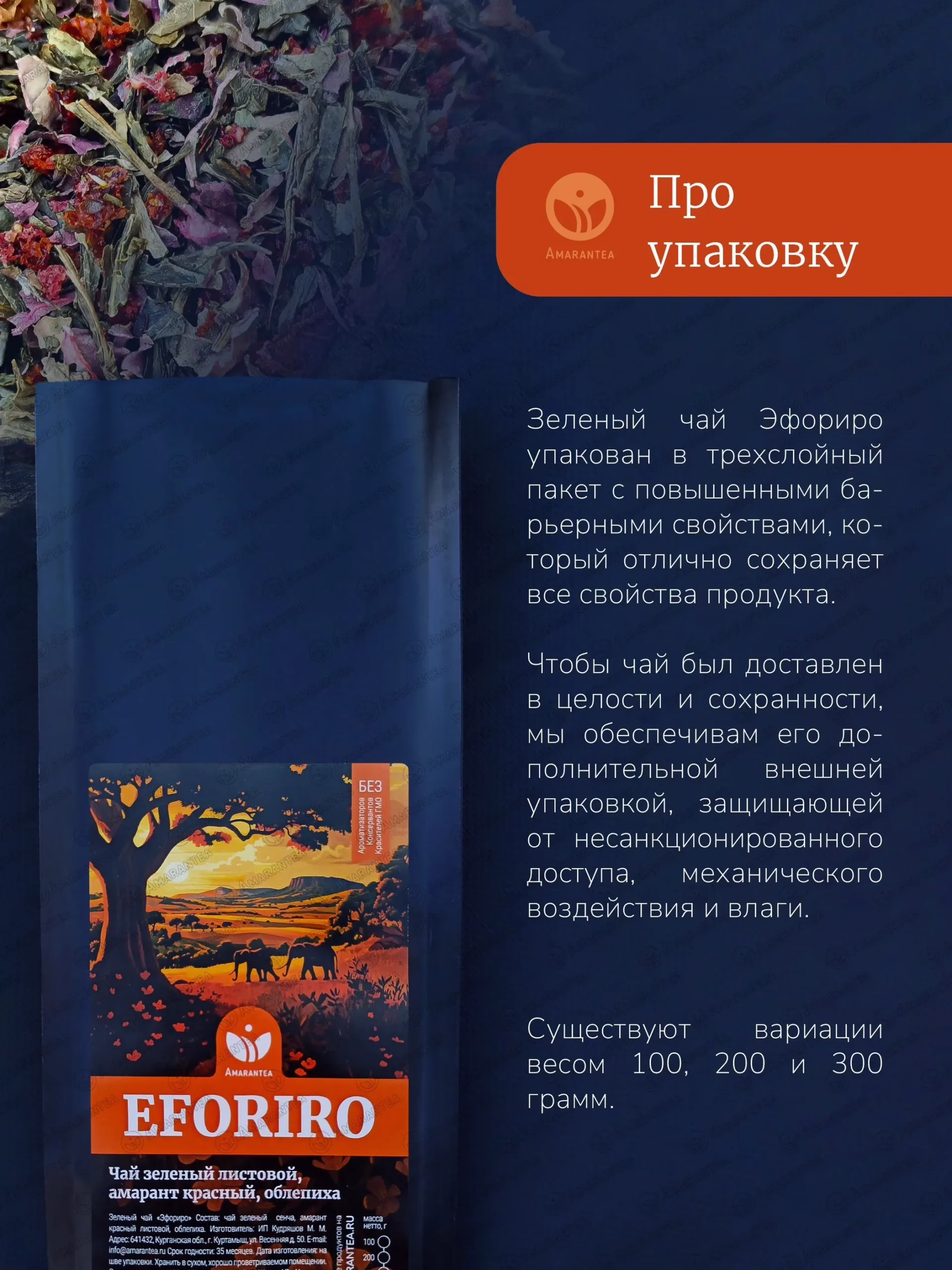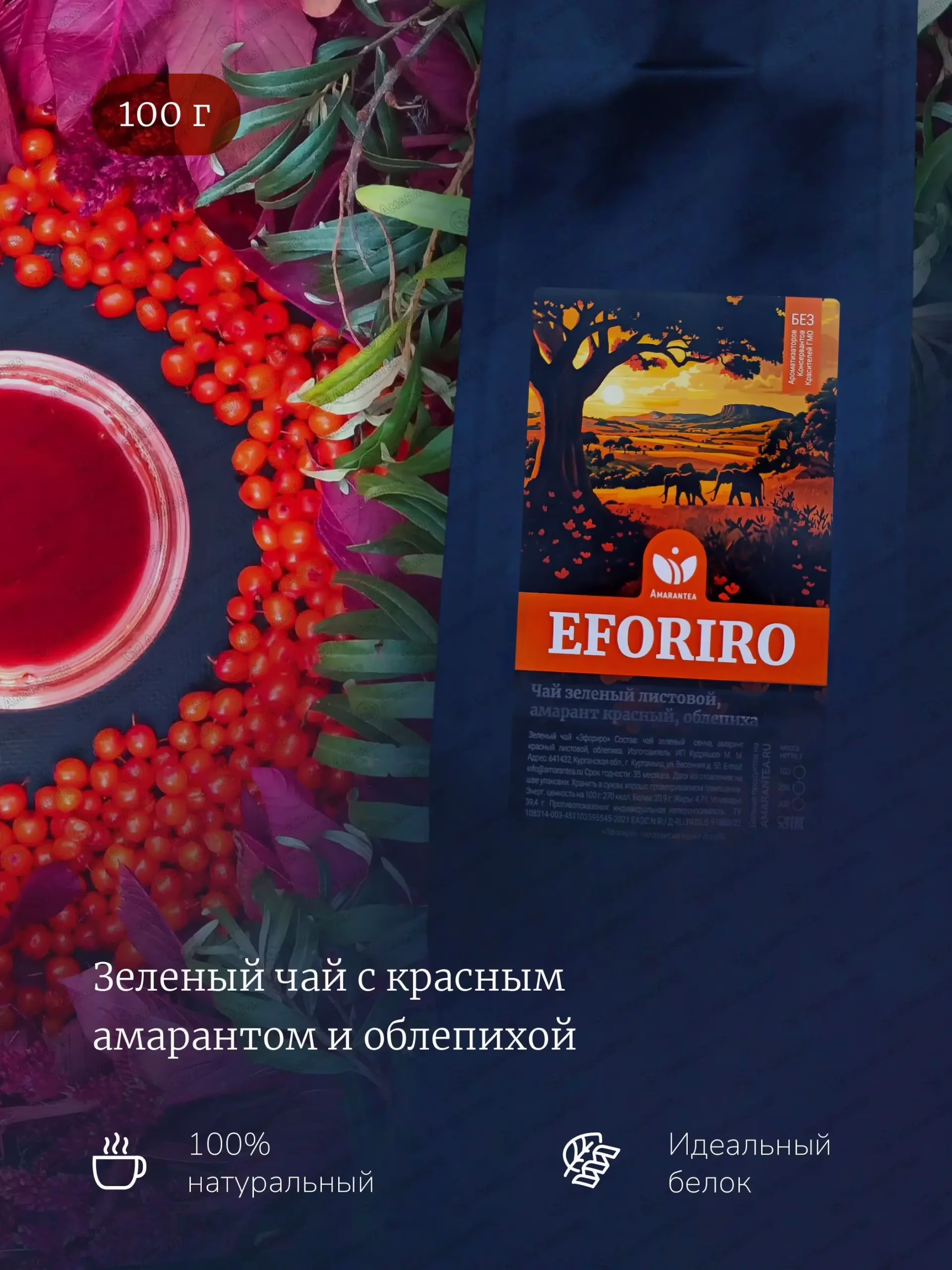 Зеленый чай EFORIRO с красным амарантом и облепихой, 100 г